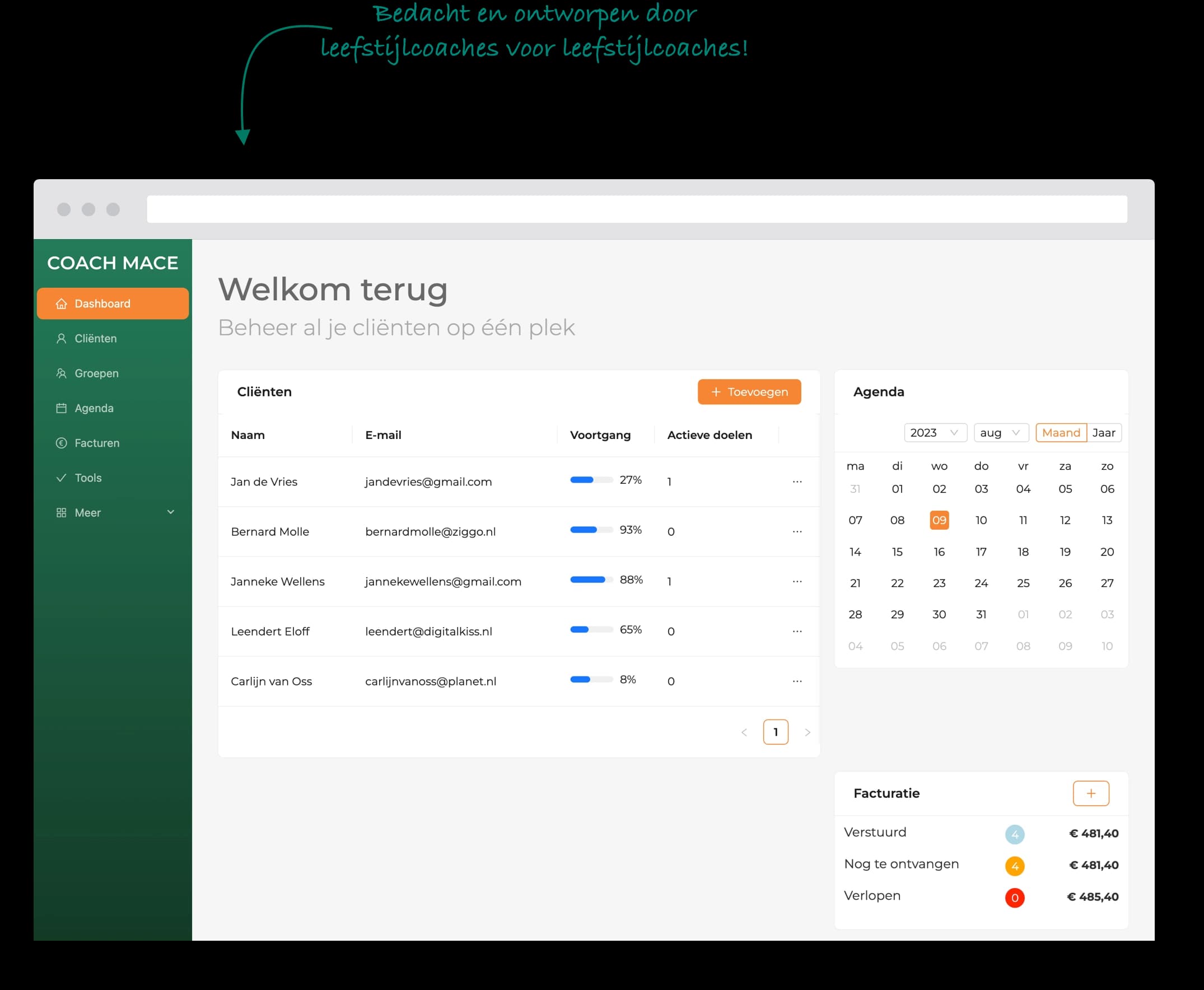 Met CoachMace kunnen alle facturen vanaf één plek automatisch verstuurd en beheerd worden